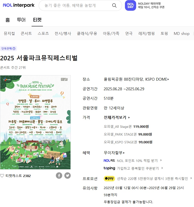 할인 혜택은 물론, 좋아하는 아티스트 공연까지 놓치지 않으려면 지금 바로 예매를 서두르세요.